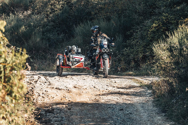 Der Sidecar war außerdem mit den Taschen der GIVI‑Canyon‑Linie ausgestattet – einer äußerst leistungsstarken und wasserdichten Produktreihe, die sowohl für anspruchsvolle Offroad-Reisen als auch für lange Touren in Begleitung entwickelt wurde und in jeder Situation Zuverlässigkeit und Praktikabilität garantiert.