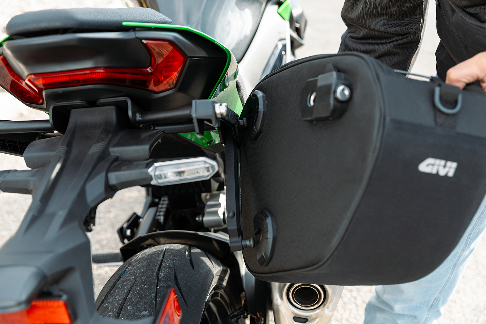 Stealth ist der neue revolutionäre einziehbare GIVI‑Halter für weiche Seitentaschen, entwickelt, um Technologie, Praktikabilität und Design zu vereinen.